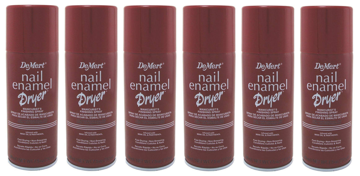 Dry your nail polish quickly with Demert Nail Enamel Dryer Spray. This 7.5-ounce spray comes in a pack of 6, ensuring your manicure stays flawless and smudge-free.
