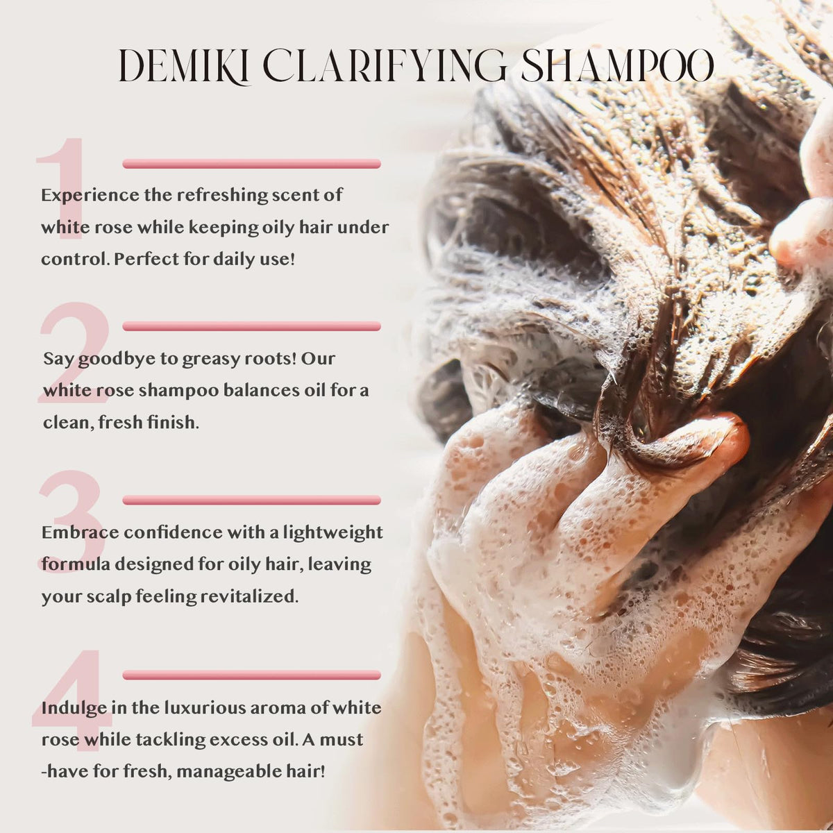 DEMIKI Shampoo for Women | Japanese Shampoo Sulfate Free for Oily Hair | Dye & Paraben Free | Organic Rose-Scented | Clarifying, Moisturizing, Refreshing Natural Hair Care | Anti Dandruff 16oz