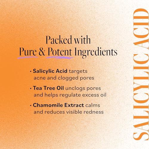 Ingredients: Active Ingredient Salicylic Acid 2%, Inactive Ingredients Purified Water, Disodium Laureth Sulfosuccinate, Cocamidopropyl Hydroxysultaine Coconut Derived, Cocamidopropylamine Oxide, PEG150 Distearate, Polysorbate 20, Melaleuca Alternifolia Tea Tree Leaf Oil, Glycerin Vegetable Derived, Lavandula Angustifolia Lavender Oil, Aniba Rosodora Rosewood Wood Oil, Salix Alba Willow Bark Extract, Organic Chamomilla Recutita Matricaria Flower Extract, Decyl Glucoside Plant Derived, Potassium Sorbate, Phenoxyethanol, Ethylhexylglycerin. EC 91616 22417 updated product name 10518 removed white from willow