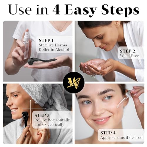 Derma Roller for Skin, Hair & Beard – Women and Men Titanium Microneedling Roller for Face & Scalp, Safe & Easy to Use 0.25mm