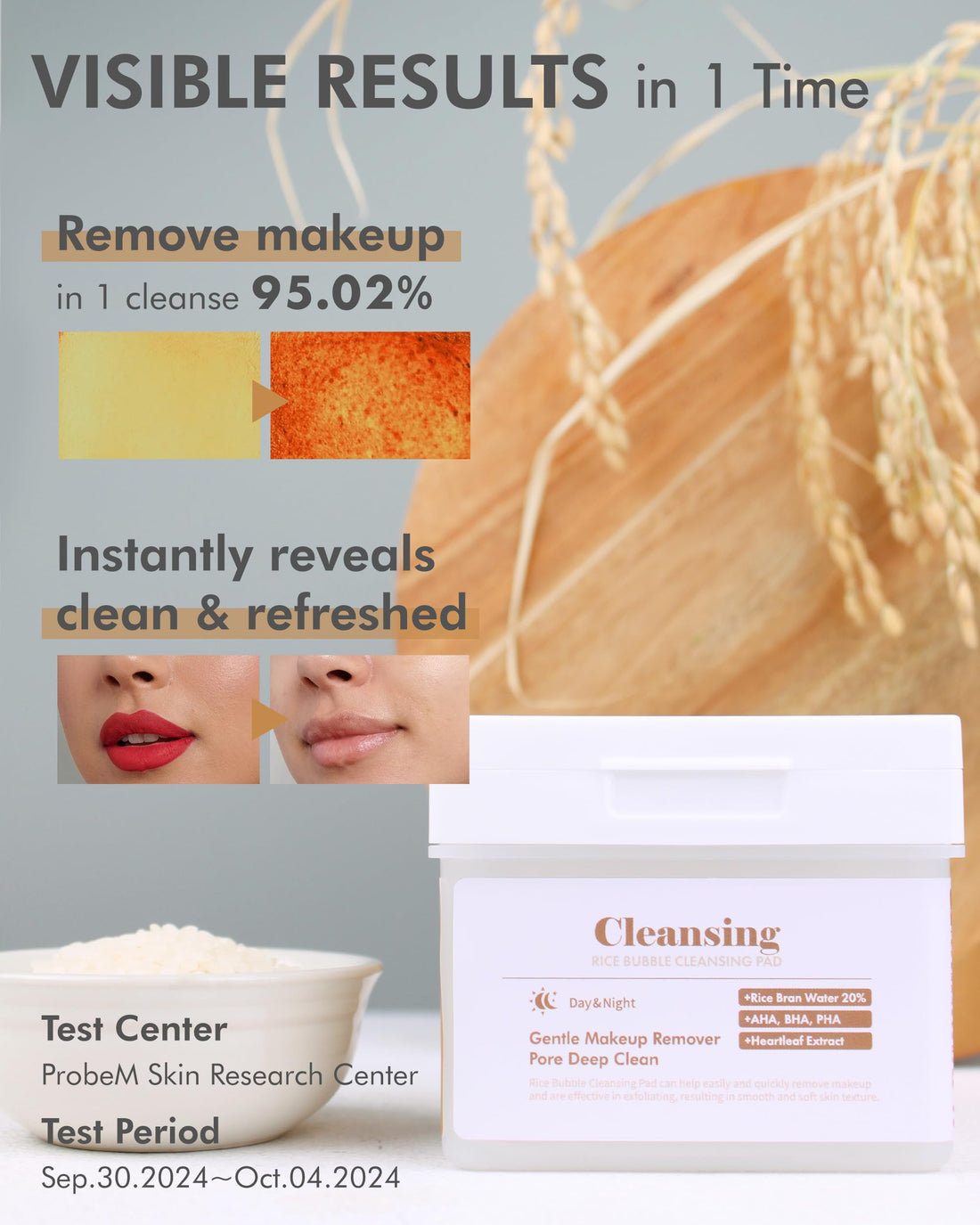 DERMAL Rice Bubble Cleansing Pad is a unique makeup remover bubble pad that combines exfoliating and hydrating properties. Infused with Korean Rice Bran Water, AHA, BHA, and PHA, these cleansing pads offer a fresh green citrus scent and gentle cleansing experience.