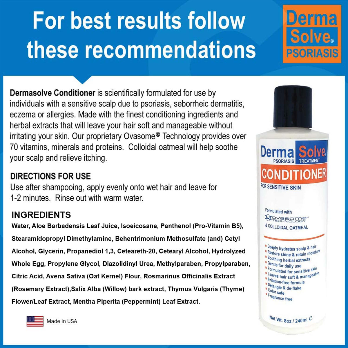 Dermasolve Psoriasis Conditioner is a soothing solution for anti-dandruff, seborrheic dermatitis, sensitive skin, and damaged hair repair. It provides relief for flaky, itchy, and dry scalp issues.