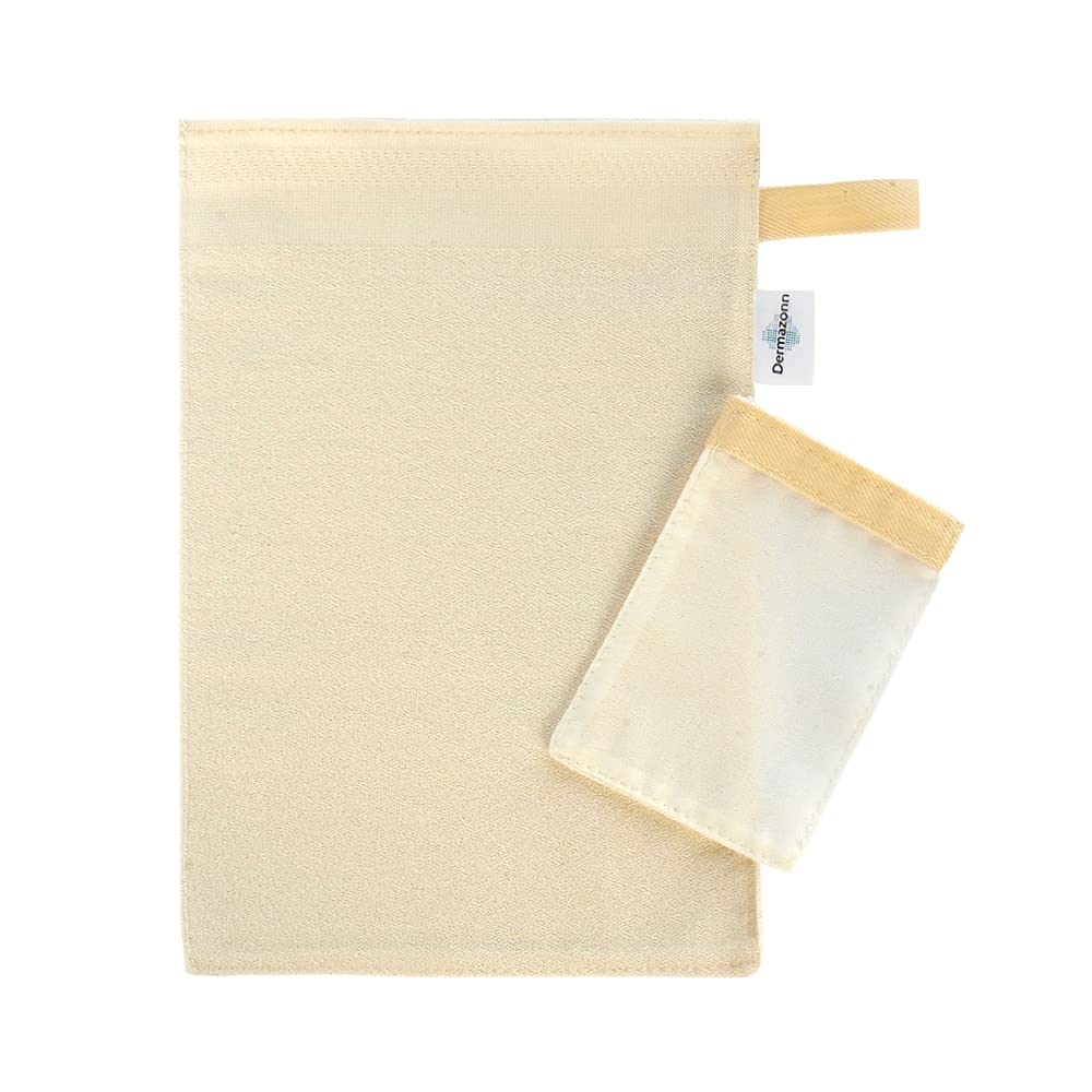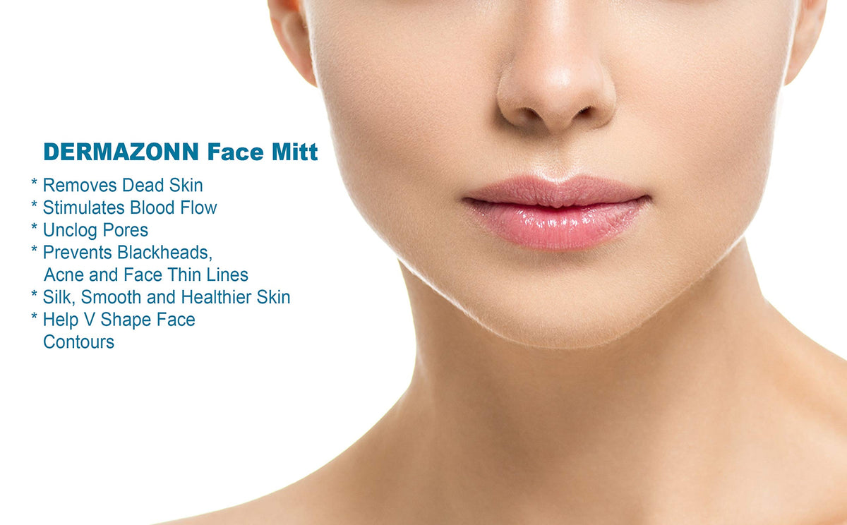 Directions :: 1- Have a regular bath for 5-8 minutes, 2 - Do not apply any soaps or lotions to the body, 4 - Wet the DERMAZONN Authentic Exfoliation Mitt and squeeze a little to leave it slightly damp, 5 - Exfoliate your body with long firm upward and downward strokes till dead skin cells visually come out from your skin, Use more gentle motions with face mitt, 6 - Use once every week or two (Depends on the sensitivity and type of your skin).