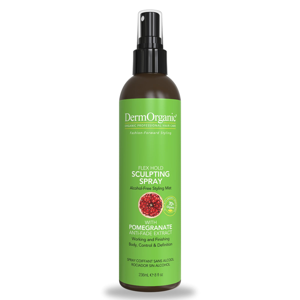 DermOrganic Flex Hold Sculpting Spray is an 8 oz styling spray enriched with organic pomegranate extract. This anti-fade formula provides body, bounce, and style to your hair while keeping it nourished and protected from environmental stressors.