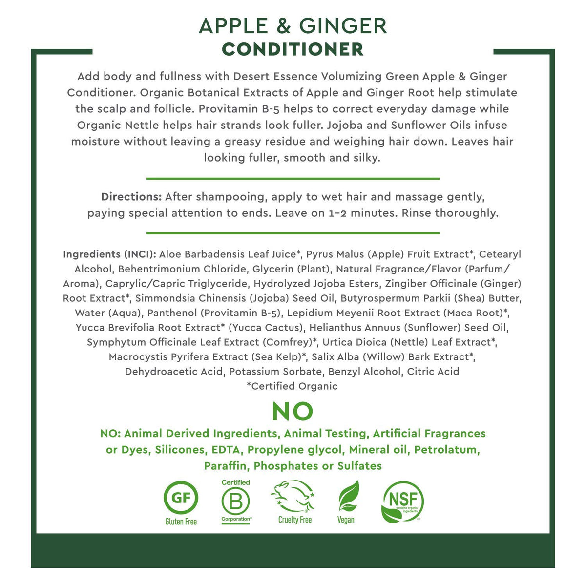 Desert Essence All Natural Organic Green Apple & Ginger Volumizing Shampoo and Conditioner Bundle With Aloe Vera, Kelp, Nettle and Ginger for Cleansing Environmental Pollutants, 8 fl. oz. each