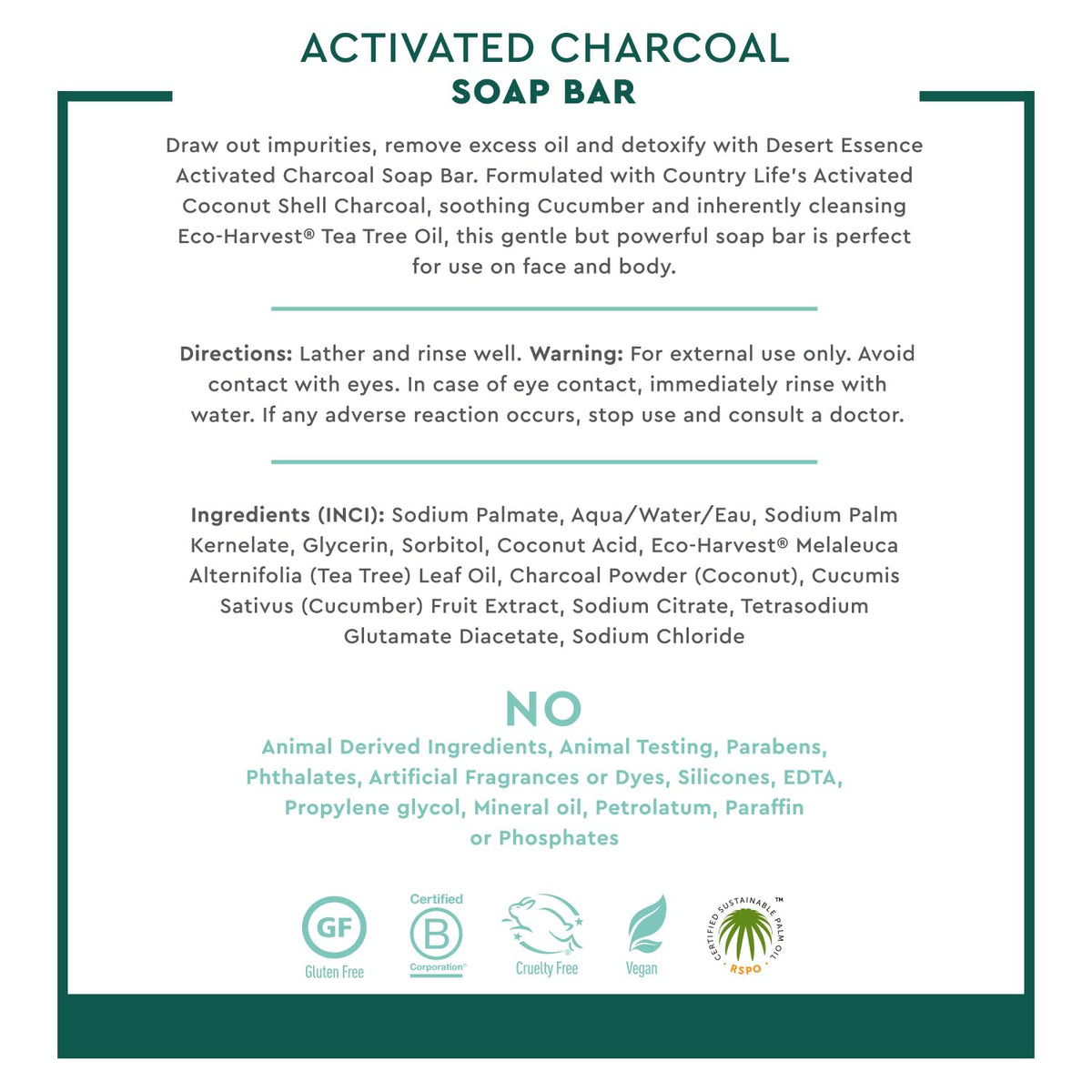 Desert Essence Soap Bar Activated Charcoal - 5 oz - Face & Body - Palm Oil - Detoxify & Moisturize Skin - Remove Excess Oil