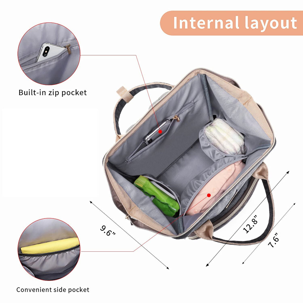 Diaper Bag Backpack for Women, Baby Bags for Girls,Diaper Bag with Changing Pad, and Insulated Pockets (Dark Grey +Light Grey)