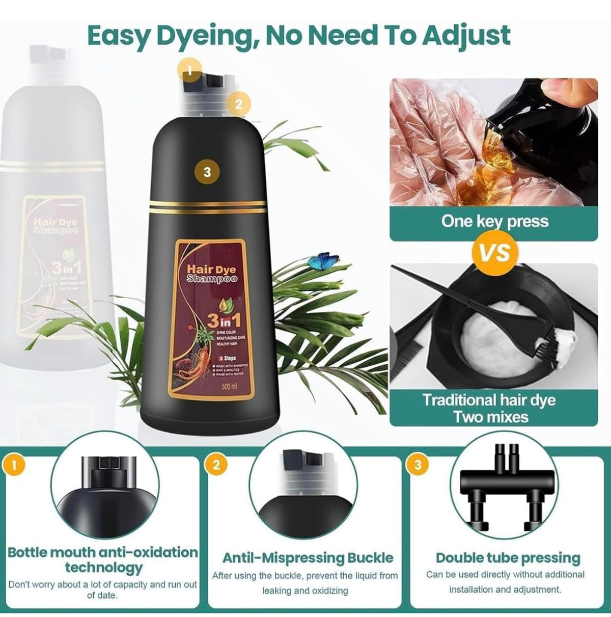 DiMilano Black, Dark Brown & Chestrnut Brown Hair Dye Shampoo for Gray Hair, Herbal Ingredients Shampoo 3 in 1 Unisex, Grey Coverage Shampoo 500Ml or 17.6 fl. Oz. (Black)