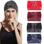 DINPREY Assorted Paisley Print Wide Bandana Knot Headbands Criss Cross Head Wrap Hair Band (4 Colors Pack B)