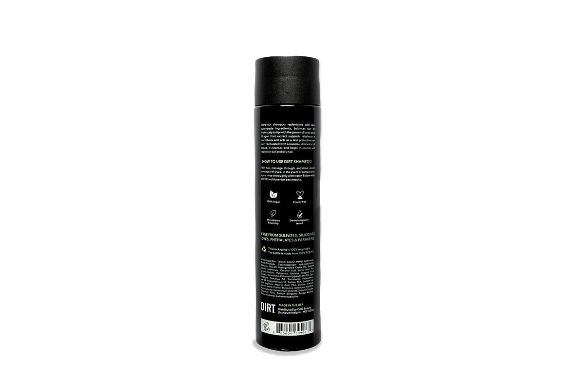 DIRT- Pure Replenishment- Shampoo- 8.5 oz- Vegan- All Hair Types- Straight, Fine, Curly, Frizzy, Wavy, Thick- Unisex Product for Men and Women- Ultra-Rich Shampoo replenishes with skincare-grade ingredients- Balances hair pH with lactic acid- Rebalan