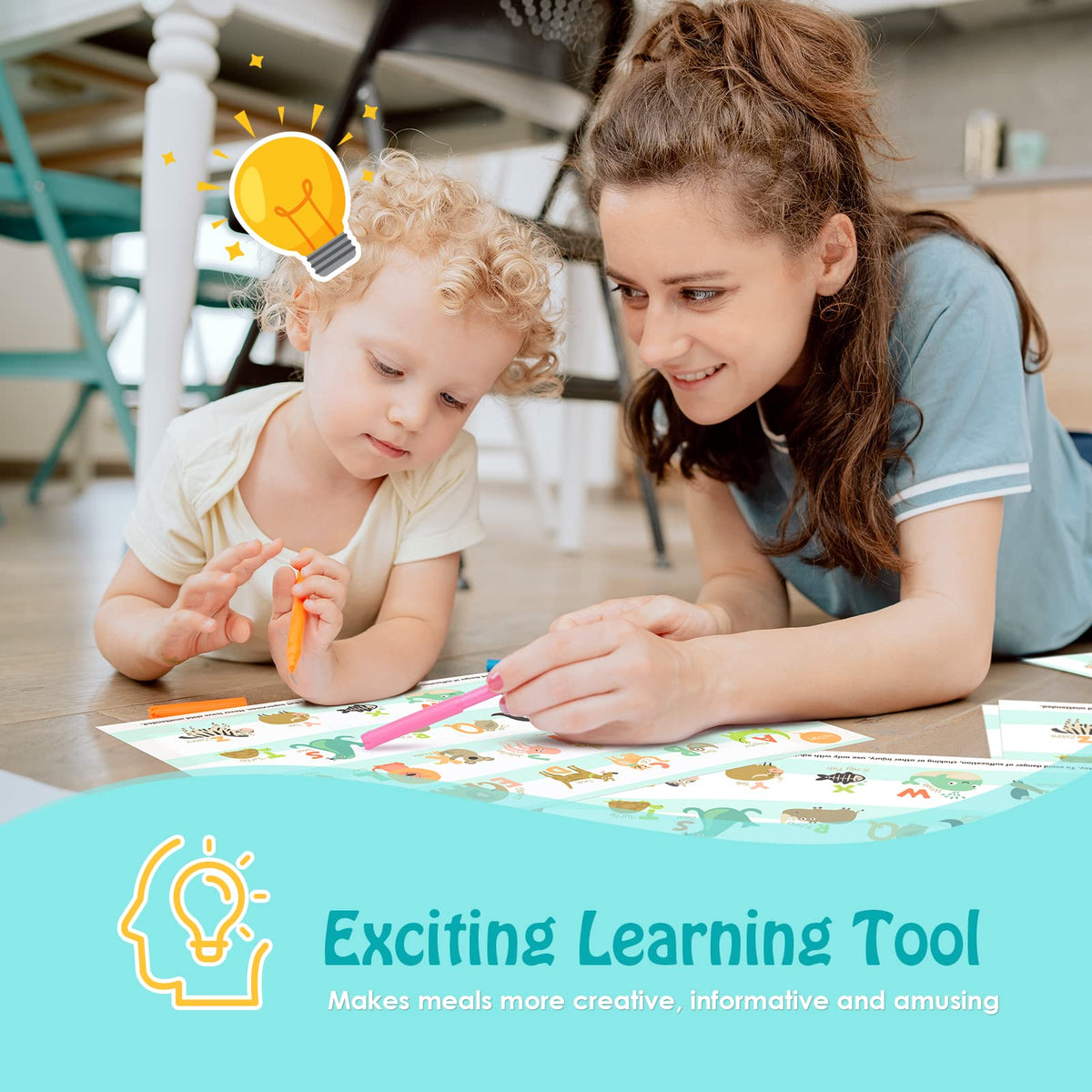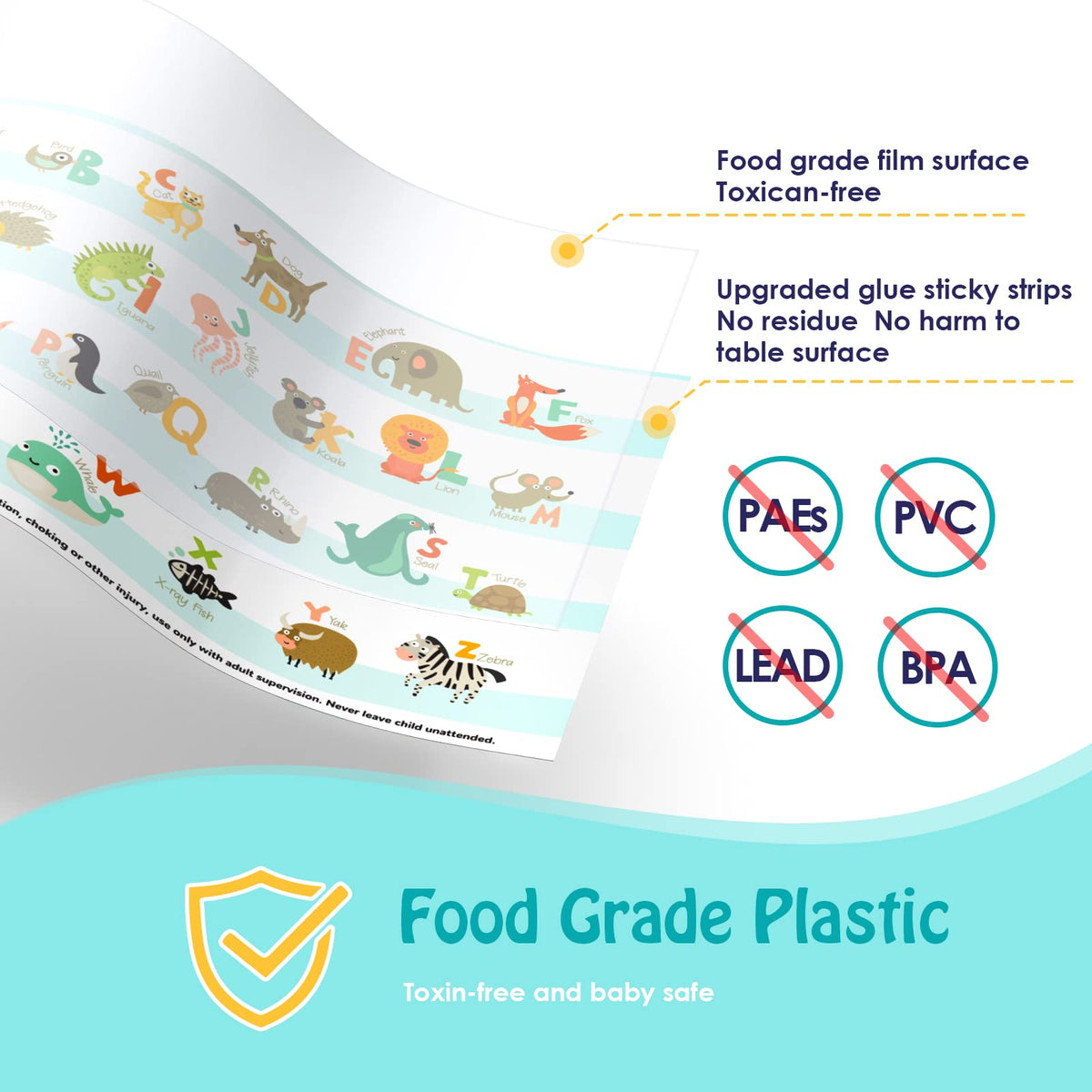 Disposable Placemats for Baby 40 Pack Stick-On Baby Placemat Alphabet ABC Animal Kids Table Mat for Restaurants Dining Table Travel Essentials for Toddlers, Multicolor