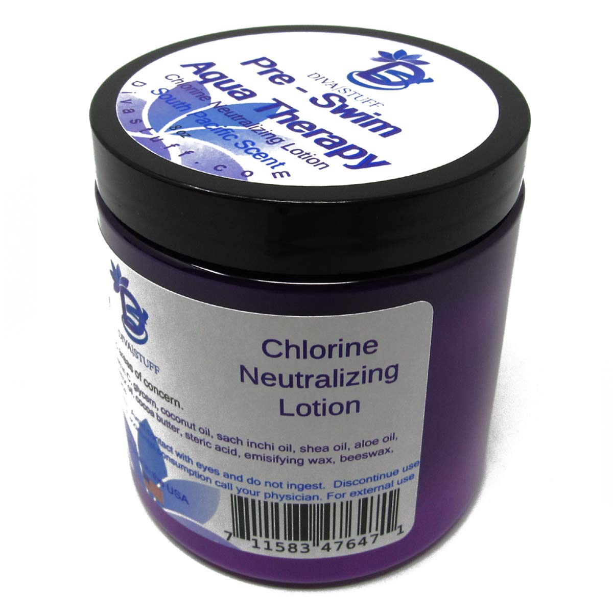 Diva Stuff Pre-Swim Aqua Therapy Chlorine Neutralizing Body Moisturizing Lotion for Swimmers, Protects Skin from Chlorine and Salt Water, 8 oz - Made in the USA, Fresh South Pacific