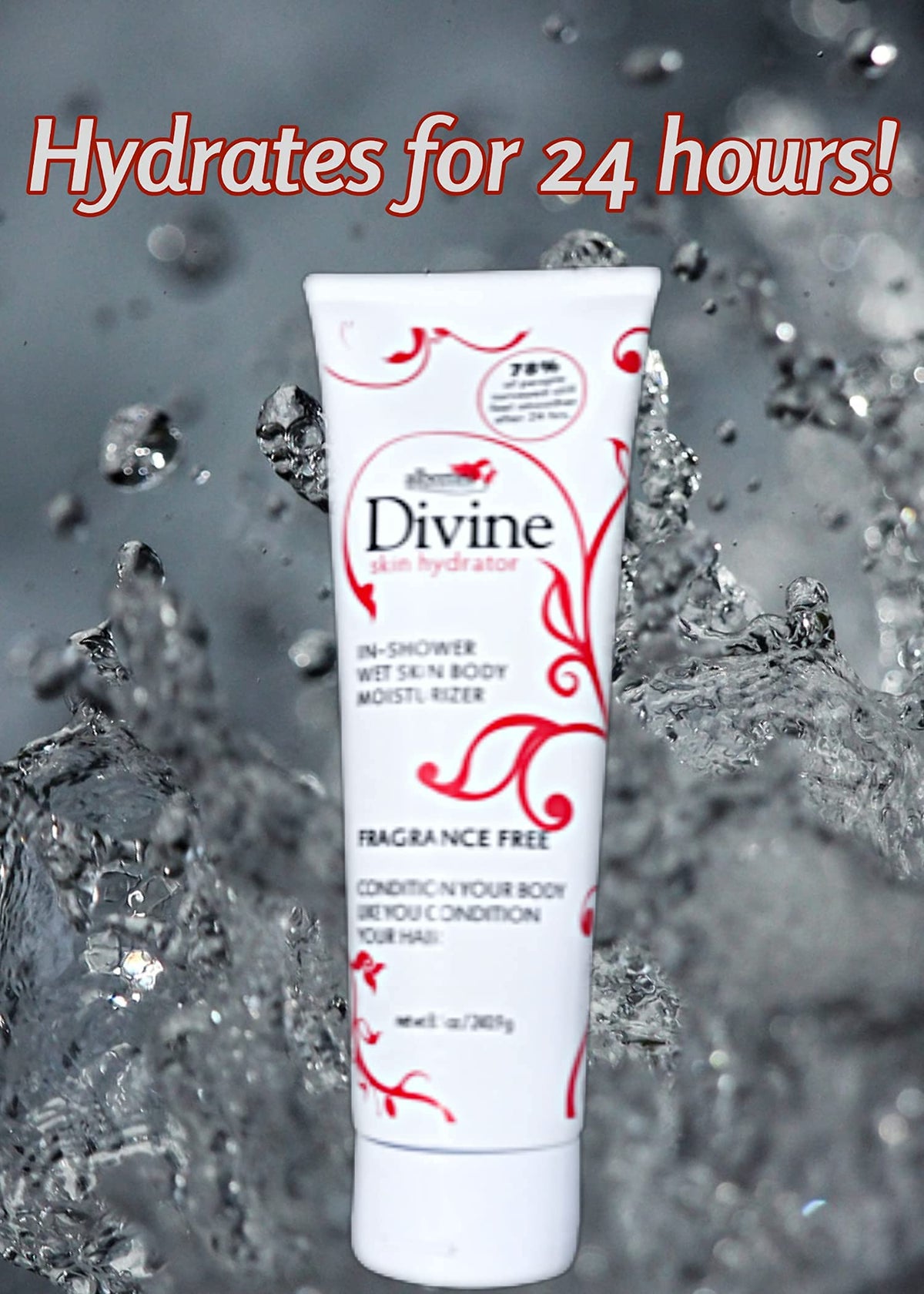 Divine Skin Hydrator is an unscented in-shower body moisturizer that helps soothe dry, itchy, and irritated skin. This fragrance-free formula provides relief and hydration for sensitive skin.