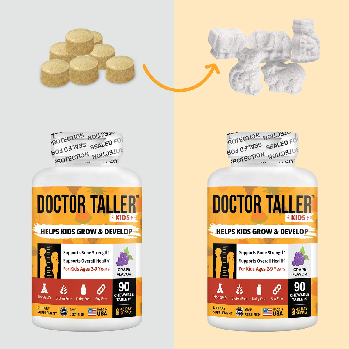 Doctor Taller Kids - Kids Multivitamins, Toddler Vitamins - Support Bone Strength, Enhanced Immunity with Calcium, Multivitamins for Ages 2 to 9 - Grape Flavor - 90 Vegan Chewable Tablets | 1 Pack