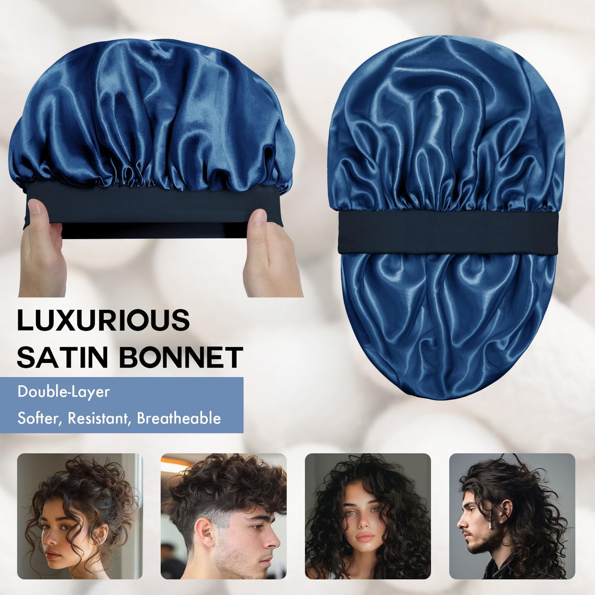 Doitory Satin Silk Bonnet for Sleeping, Double Layer Silk Sleep Cap for Men & Women, Soft Satin Lined Bonnet for Natural & Curly Hair(Navy Blue)