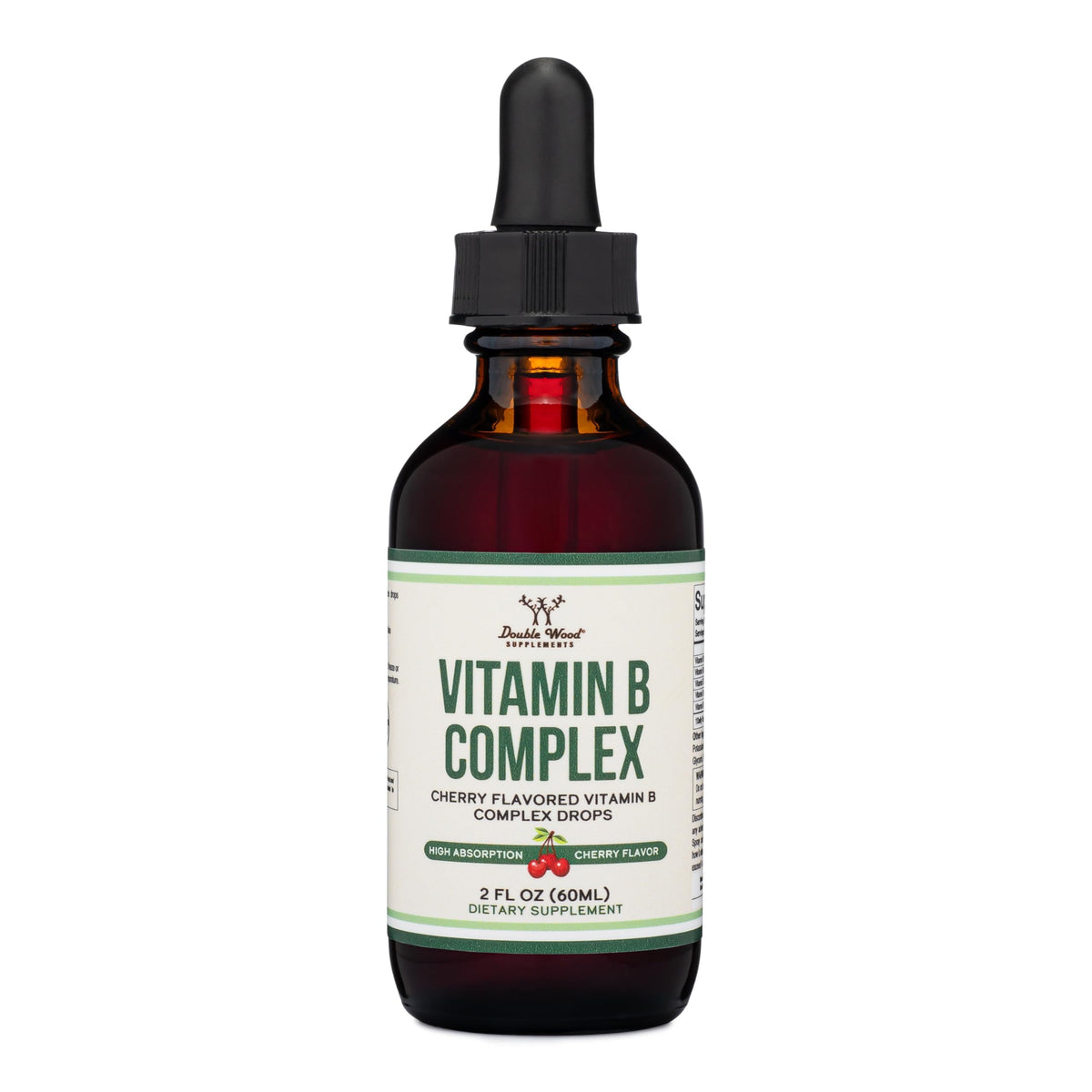 Double Wood Supplements Liquid Vitamin B Complex offers a cherry-flavored blend for optimal absorption. This 2-month supply supports energy levels and overall well-being.