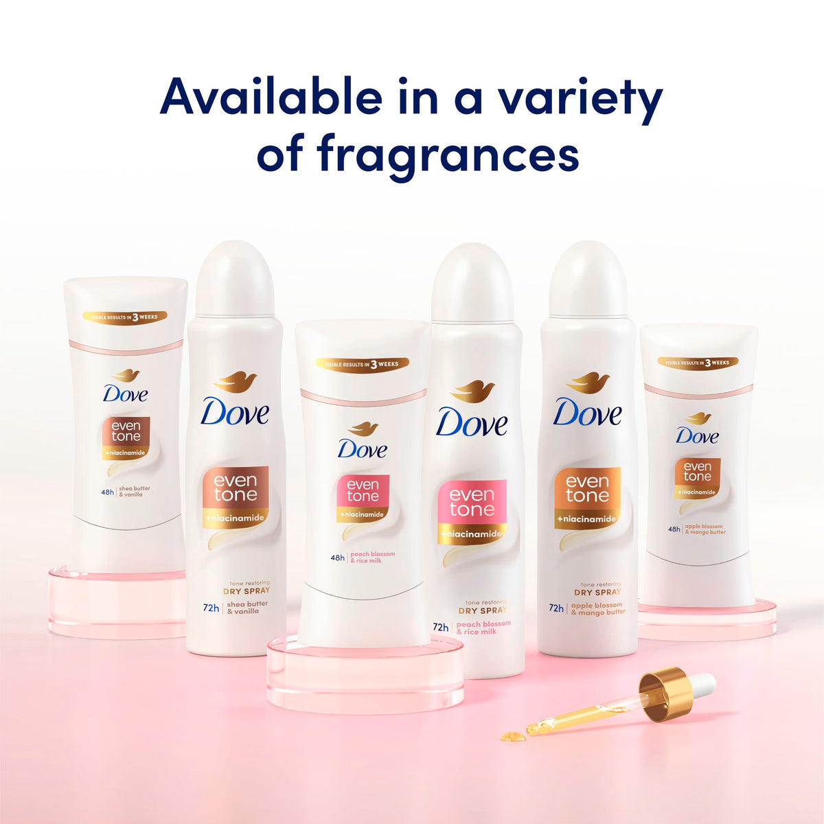 Dove Antiperspirant Deodorant Stick Even Tone Shea Butter & Vanilla Pack of 3 offers 48-hour odor and sweat protection while restoring skin tone and texture for visibly improved underarms.