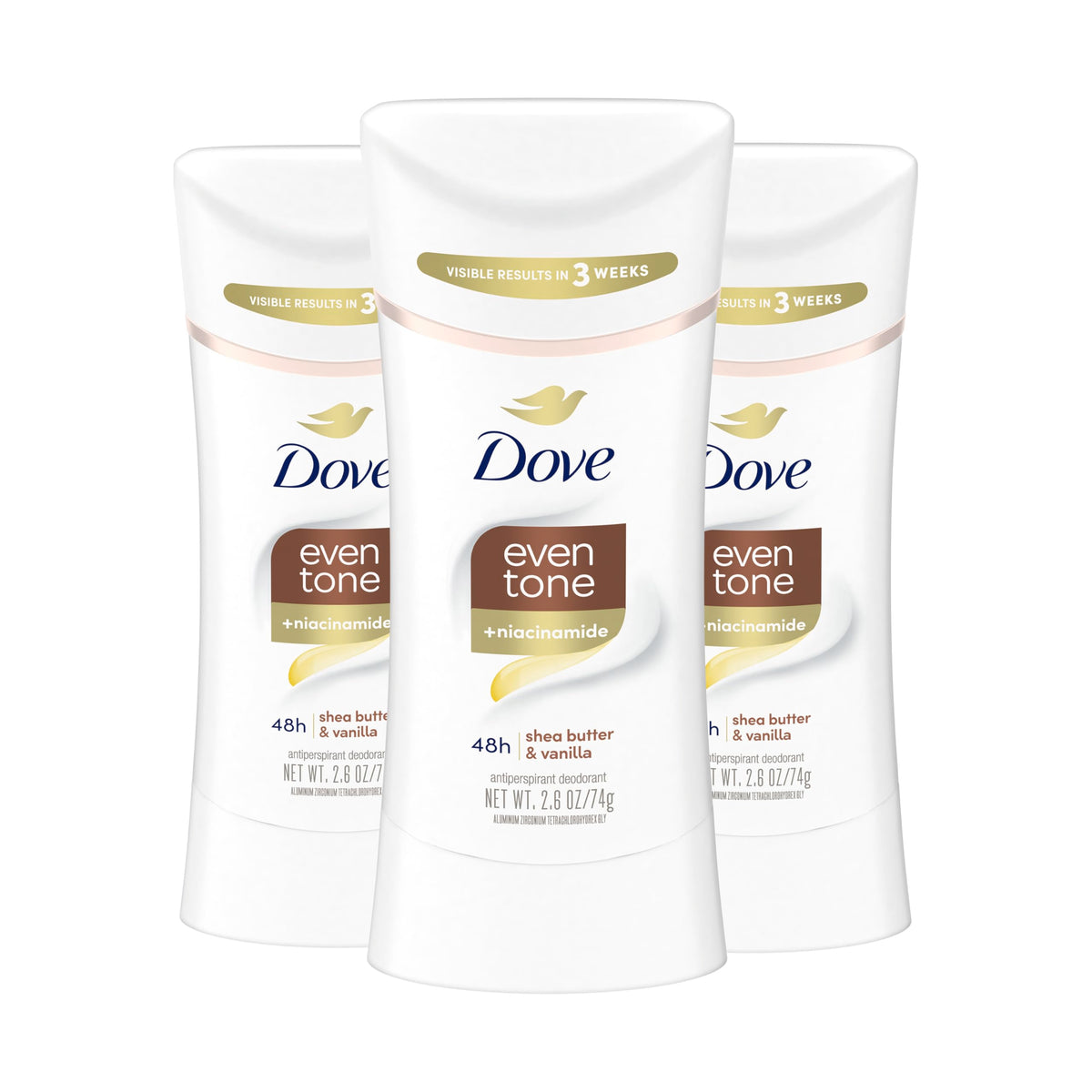 Dove Antiperspirant Deodorant Stick Even Tone Shea Butter & Vanilla Pack of 3 for 48h Odor and Sweat Protection & Skin Restoration, with Niacinamide & Visible Results in 3 Weeks, 2.6 oz