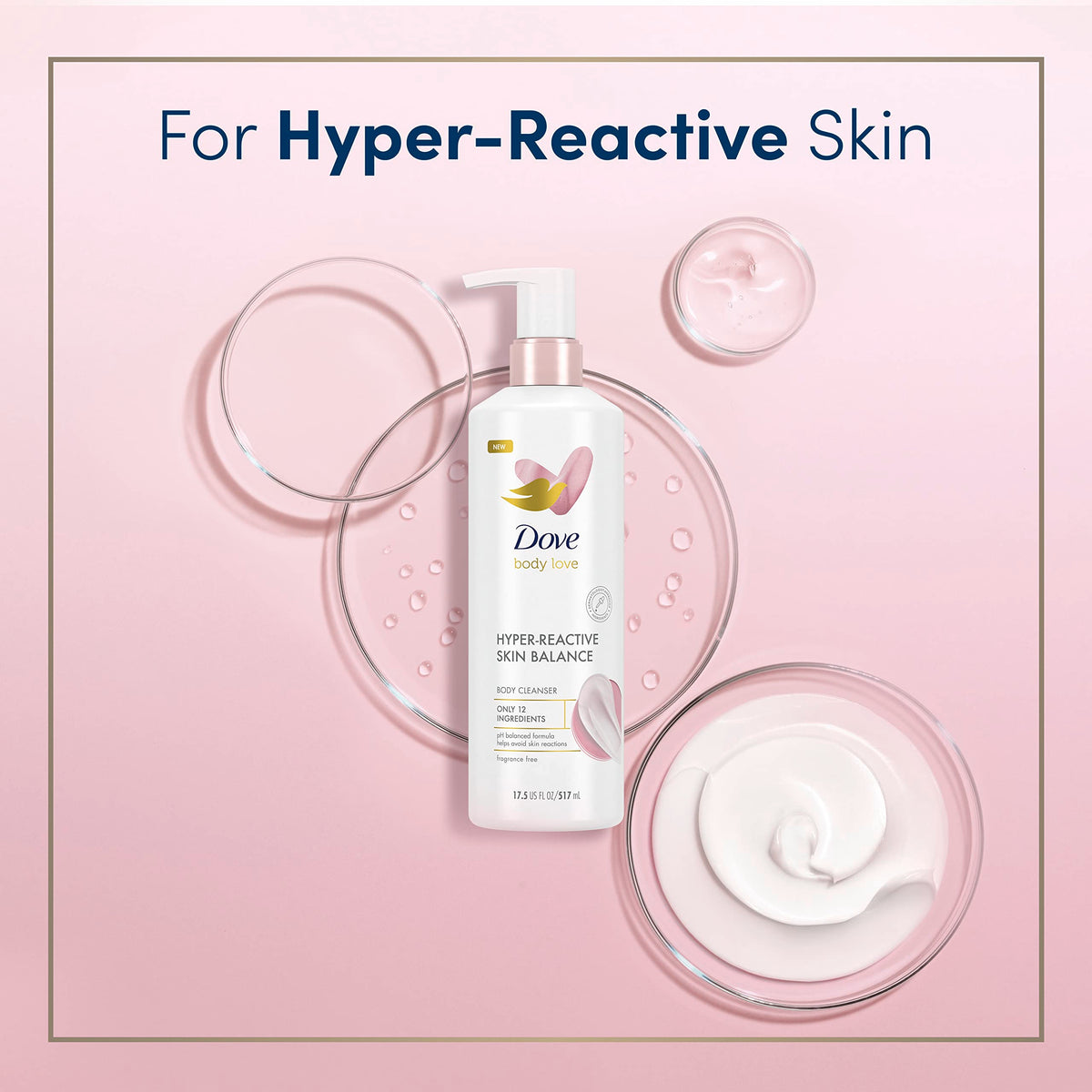 Dove Body Love Body Cleanser Hyper-Reactive Skin Balance for Ultra-Sensitive Reaction-Prone Skin Fragrance Free Body Wash with Only 12 Ingredients 17.5 oz