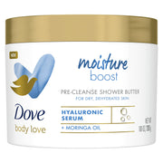 - DOUBLE MOISTURE REGIMEN: Double down on moisture with the silky Dove Body Love Moisture Boost Pre-Cleanse Shower Butter before following with the body cleanser for an extra dose of hydration