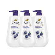 Dove Body Wash For 24hr Lotion-Soft Skin 3 Count Unwind Blueberry & Moon Milk Moisturizing Skin Cleanser with No Sulfates No Parabens