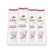 Revitalize your skin with Dove Body Wash 4 Count for 24hr Lotion-Soft Skin Replenish Dragon Fruit and Coconut Cream. This moisturizing skin cleanser, free from sulfates and parabens, provides a refreshing and nourishing shower experience.