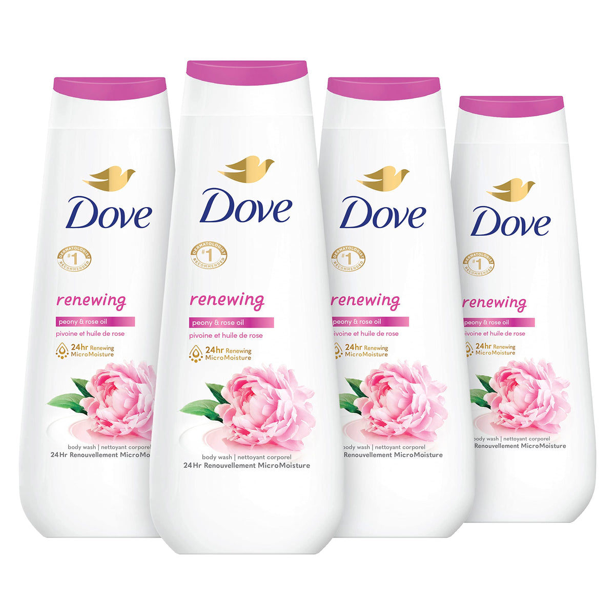 Dove Body Wash 4 Count Renewing Peony and Rose Oil for Renewed, Healthy-Looking Skin Gentle Skin Cleanser with 24hr Renewing MicroMoisture 20 oz