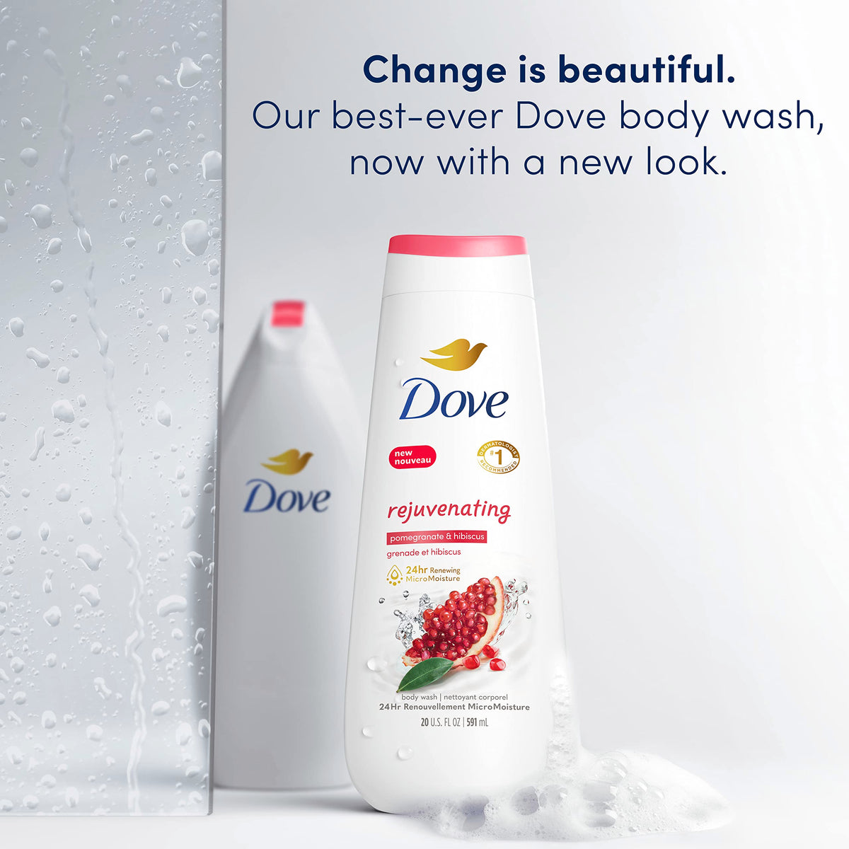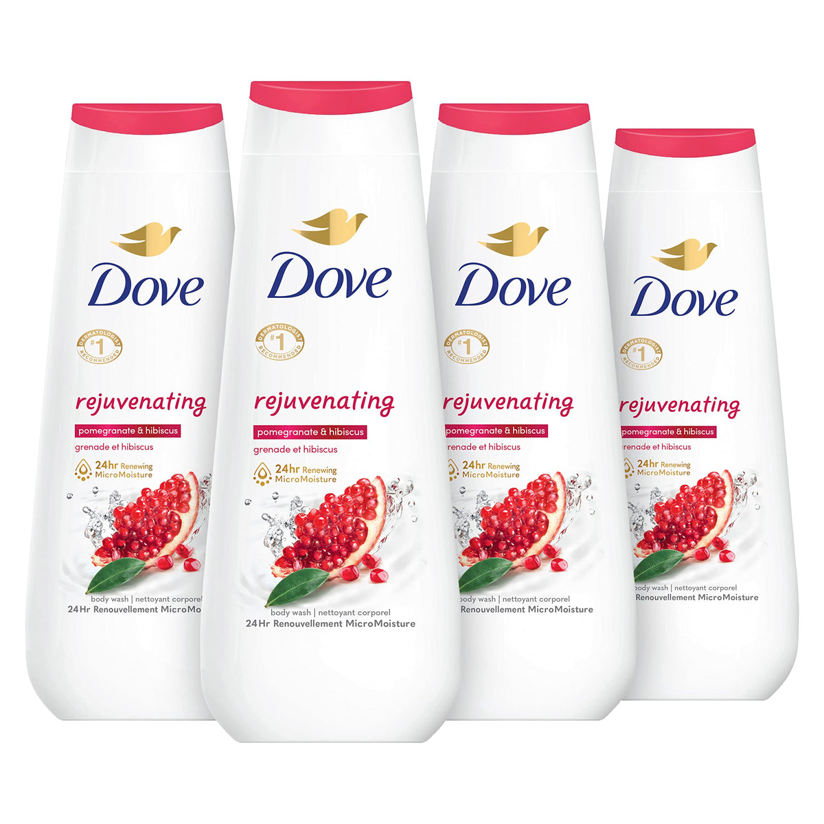 Dove Body Wash Rejuvenating Pomegranate & Hibiscus 4 Count for Renewed, Healthy-Looking Skin Gentle Skin Cleanser with 24hr Renewing MicroMoisture 20 oz