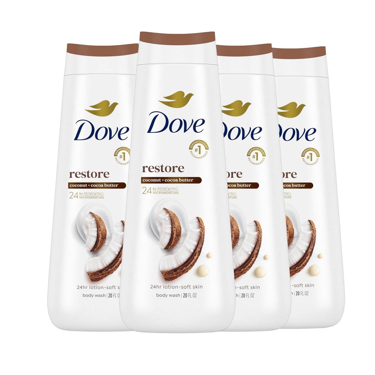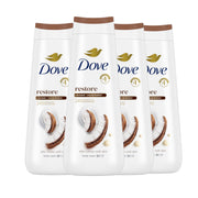 Dove Body Wash Restoring Coconut & Cocoa Butter 4 Count for Renewed, Healthy-Looking Skin Gentle Skin Cleanser That Effectively Washes Away Bacteria While Nourishing Your Skin 20 oz