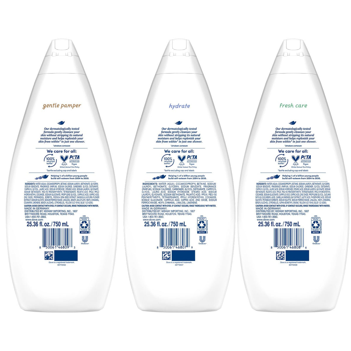 Dove Body Wash Value-Size Variety 3-Pack – Hydrate, Fresh Care, and Gentle Pamper, 25.36 Oz Ea