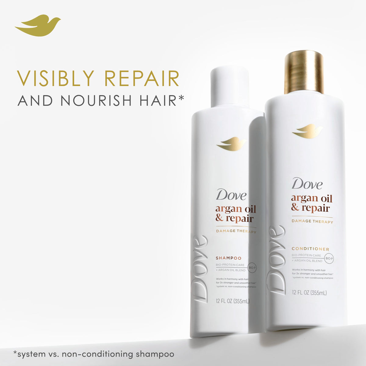 Dove Conditioner Argan Oil & Repair for Fine Hair with Bio-Protein Care Technology and Argan Oil Blend 12 Fl Oz
