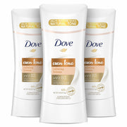 Dove Even Tone Antiperspirant Deodorant Stick in Apple Blossom & Mango Butter scent offers 3 sticks for uneven skin tone. With a 2.6 oz size per stick, this deodorant provides long-lasting freshness and skin tone balancing benefits.