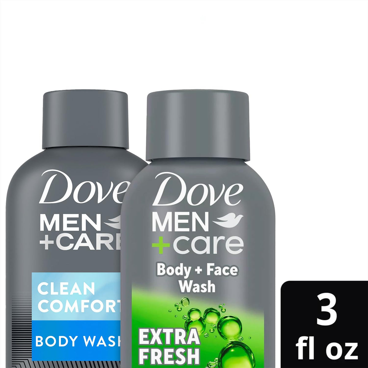 DOVE MEN + CARE Body & Face Wash Variety 2-Pack –Extra Fresh + Clean Comfort, Travel Essentials, 3 Oz Ea