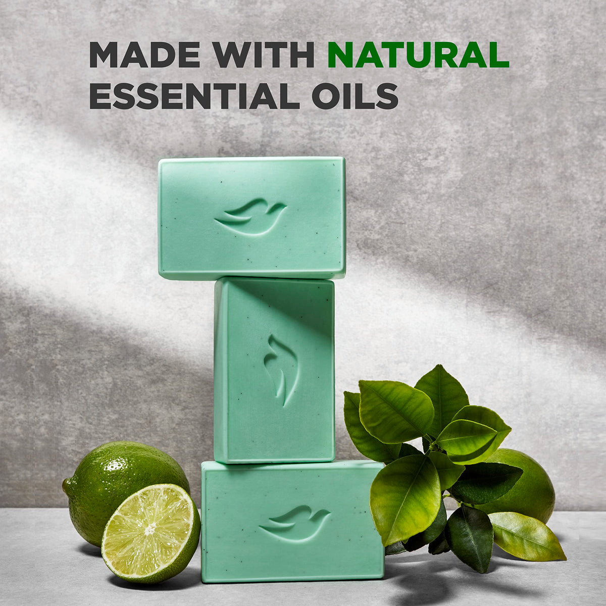 DOVE MEN + CARE Plant-Powered Natural Essential Oil Bar Soap Reinvigorating Lime + Avocado Oil to Clean and Hydrate Mens Skin 4-in-1 Bar Soap for Men's Body, Hair, Face and Shave. 5 oz, 4 Count