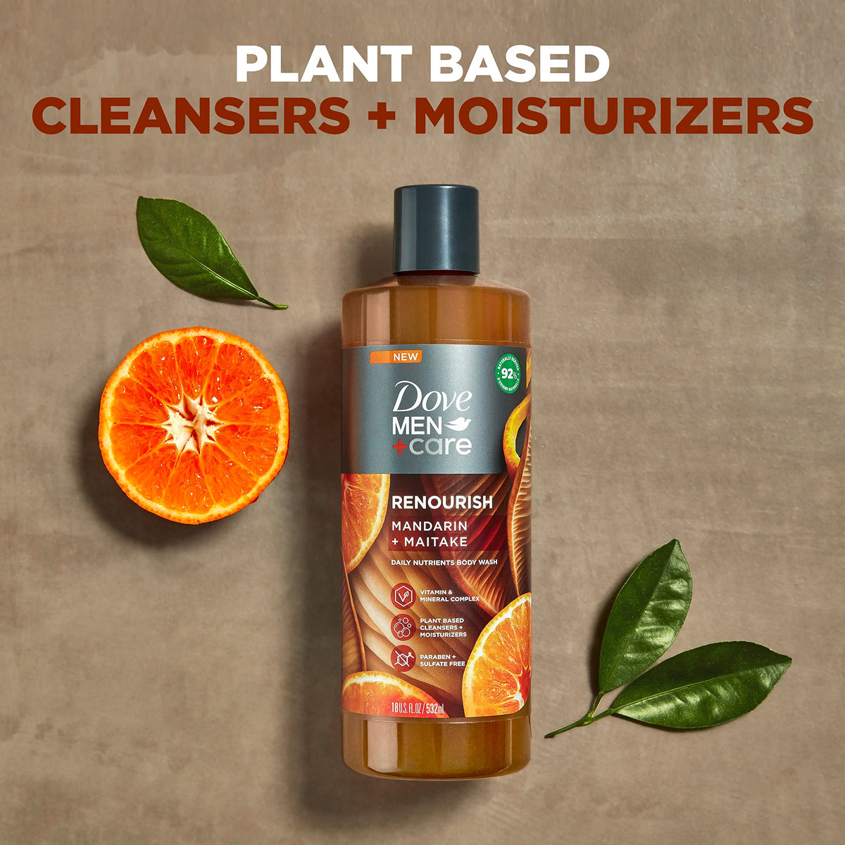 DOVE MEN + CARE Renourish Body Wash Mandarin + Maitake 4 Count With Vitamin and Mineral Complex Moisturizing Body Wash With Plant Based Ingredients 18 oz
