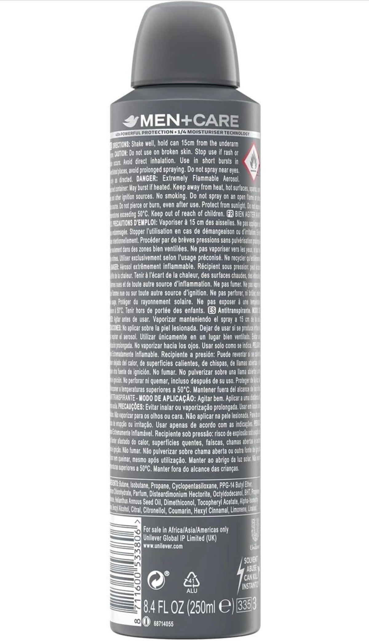 Dove Men Deodorant Aerosol Invisible Dry, Anti-irritation, Anti-White Marks, 48h Powerful Protection. 0% Alcohol, Big Size 254ml. 3pack