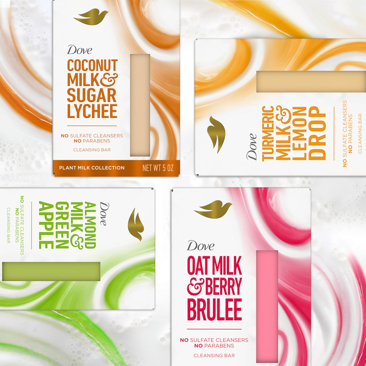 Dove Plant Milk Cleansing Bar Soap Almond Milk & Green Apple 4 count for Moisturized Skin Gentle Cleanser, No Sulfate Cleansers or Parabens, 98% Biodegradable Formula