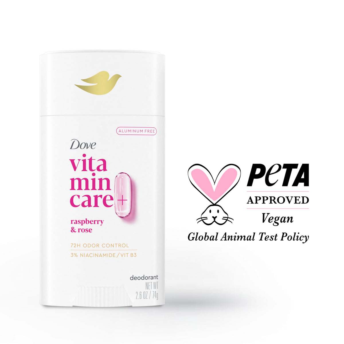 Stay fresh and protected all day with Dove VitaminCare+ Aluminum Free Deodorant Stick. This Raspberry & Rose scented deodorant offers 72-hour odor protection while being breathable and gentle on your skin.