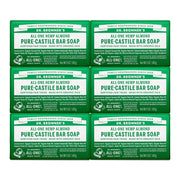 Pamper your skin with Dr. Bronner's Magic Soaps Pure-Castile Soap in All-One Hemp Almond. This pack of 5-ounce bars, totaling 6 bars, offers a luxurious cleansing experience with the nourishing properties of almond oil. Enjoy the gentle lather and refreshing scent for a spa-like bath every day.