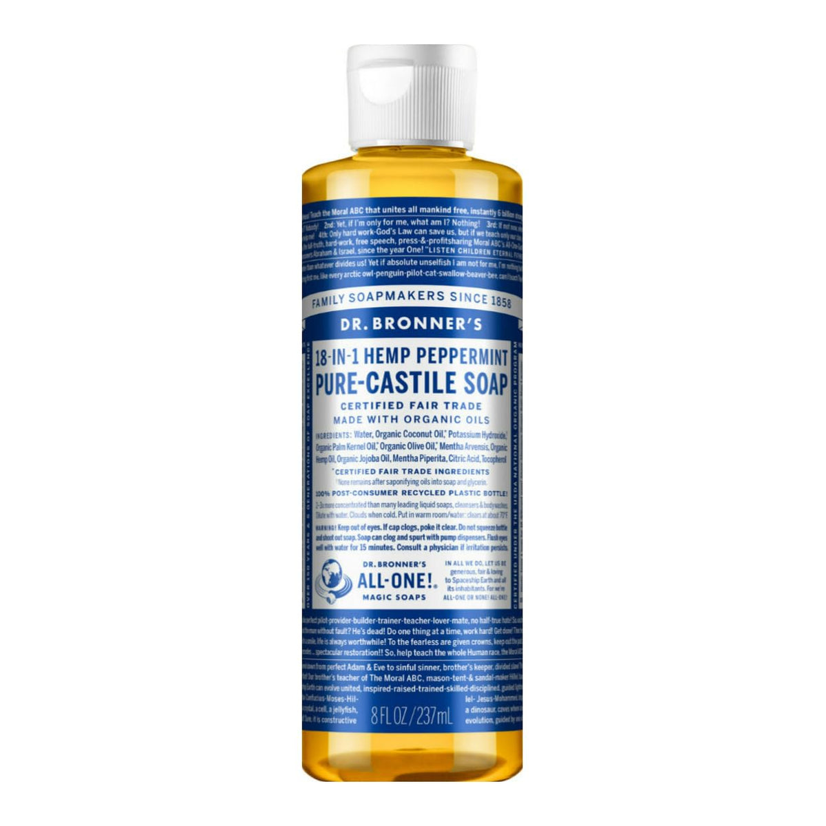 Refresh your body and home with Dr. Bronner's Organic Peppermint Liquid Soap, an all-purpose cleaner with invigorating peppermint oil. This natural and organic formula offers gentle cleansing for body, face, and household surfaces.