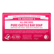 Dr. Bronner's Pure-Castile Bar Soap in Rose is a versatile product made with organic oils for face, body, and hair care. This gentle and moisturizing soap is biodegradable, vegan, and cruelty-free, offering a sustainable and ethical cleansing solution.