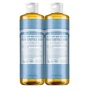Dr. Bronner's Pure-Castile Liquid Soap is a versatile product for face, hair, laundry, and dishes. This 16 oz 2-pack is made with organic oils and is perfect for sensitive skin and babies.