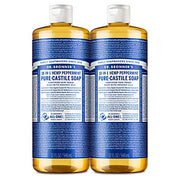 Dr. Bronner's - Pure-Castile Liquid Soap (Peppermint, 32 ounce, 2-Pack) - Made with Organic Oils, 18-in-1 Uses: Face, Body, Hair, Laundry, Pets and Dishes, Concentrated, Vegan, Non-GMO