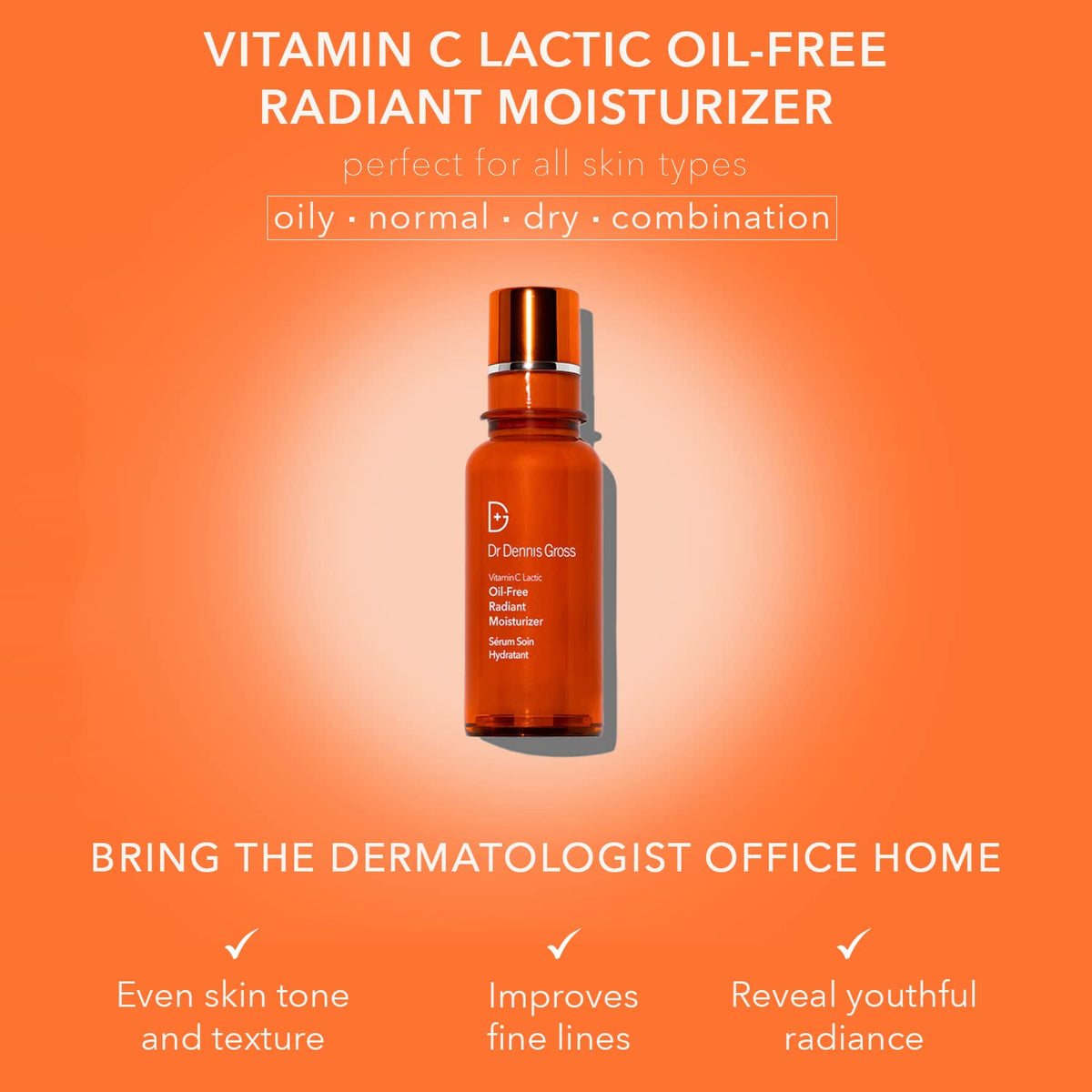Dr Dennis Gross Vitamin C Lactic Oil-Free Radiant Moisturizer: For Dullness, Uneven Tone & Texture, Fine Lines and Occasional Dryness, 1.7 oz