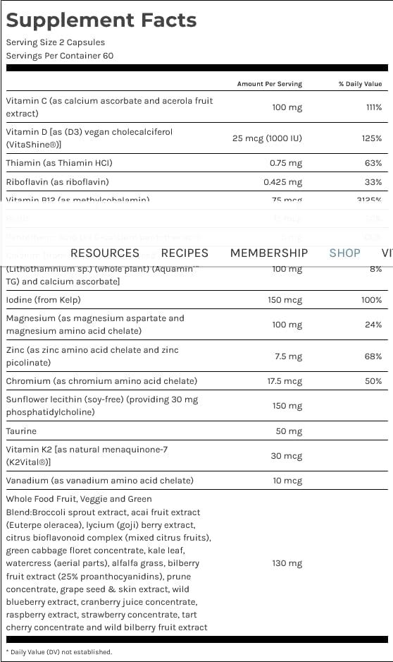 Ingredients :: Includes whole food extracts including kale, acai, watercress, and goji berry
