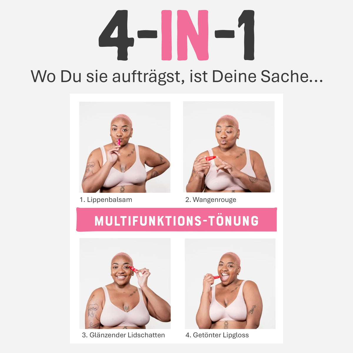 Get luscious lips with Dr. Lipp Superfood Lip Tint in Sweet Potato. This 4-in-ONE tinted balm not only moisturizes but also doubles as a lip gloss, cheek blush, and glossy eyeshadow for a versatile makeup solution.