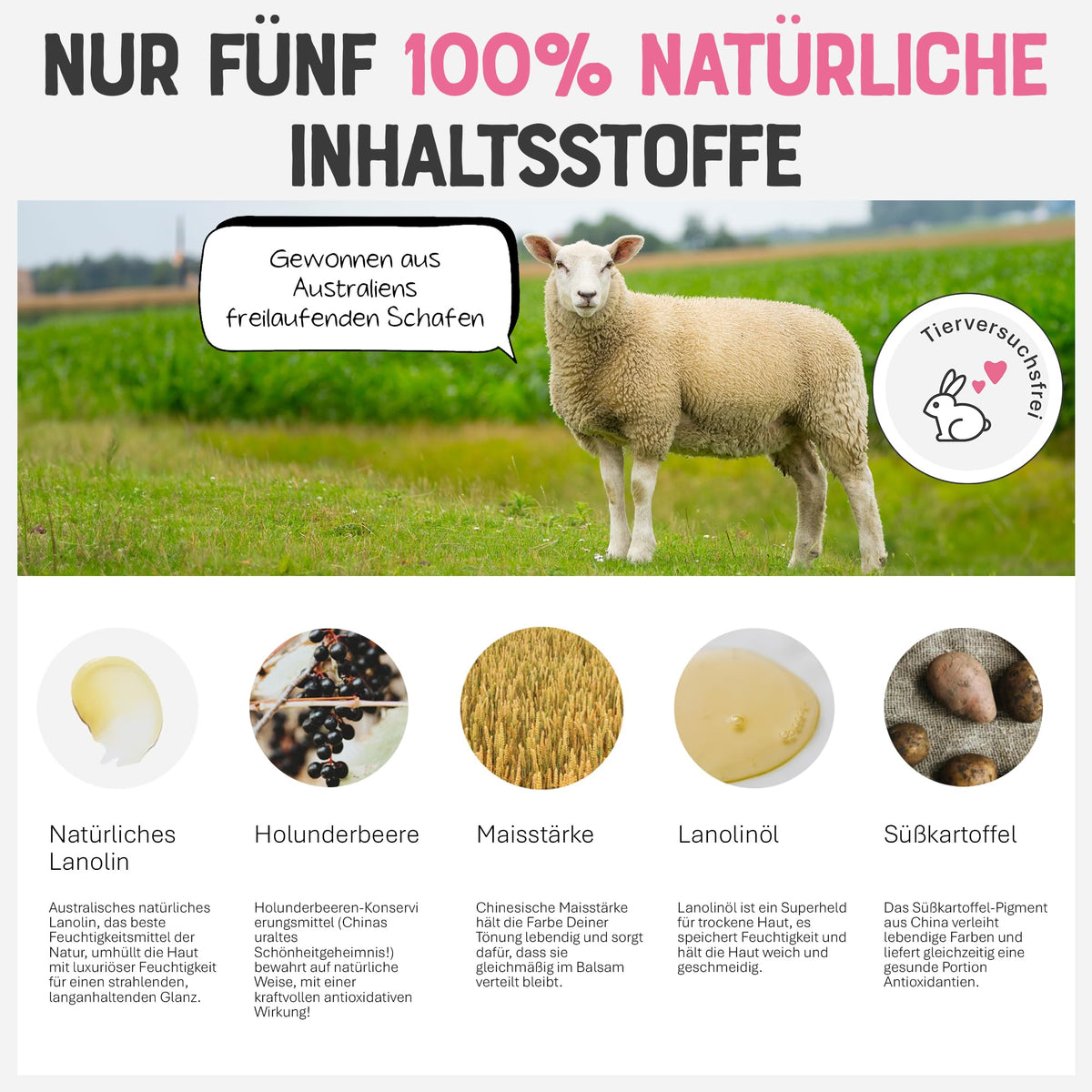 Ingredients: Medical Grade Lanolin, Lanolin Oil, Elderberry Preservative, Corn Starch, Elderberry Pigment