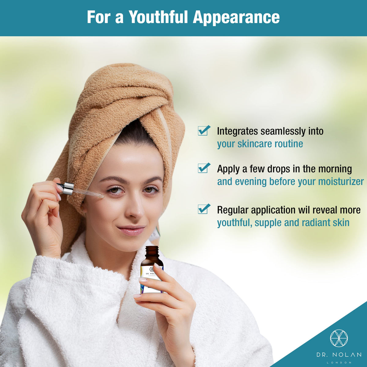The Dr Nolan Argireline Serum is an anti-aging serum enriched with 20% argireline and hyaluronic acid. This serum targets wrinkles and fine lines, promoting radiant and youthful-looking skin on the face, neck, and hands.