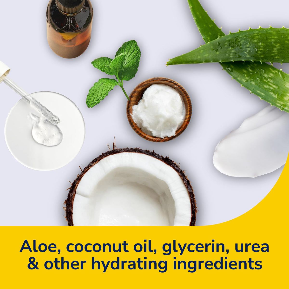Revitalize your feet with Dr. Scholl's Rough, Dry Foot Renewal Ultra Overnight Treatment. This foot cream, enriched with Aloe, Coconut Oil, and Urea, deeply moisturizes and softens your feet overnight, while the included heel sleeve socks enhance the treatment for smoother and healthier feet.
