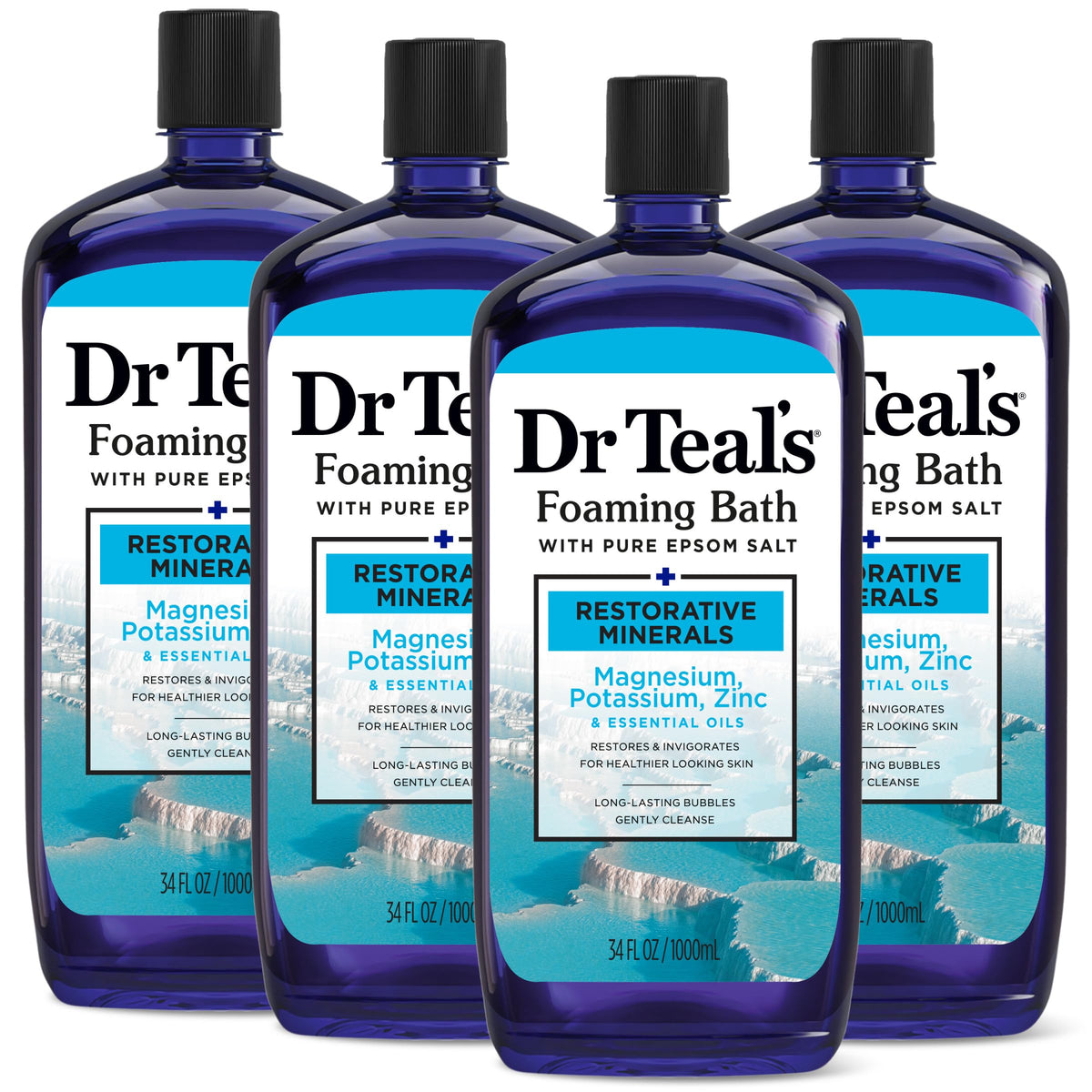 Dr Teal's Foaming Bath with Pure Epsom Salt, Restorative Minerals with Magnesium, Potassium, Zinc & Essential Oils, 34 fl oz (Pack of 4)